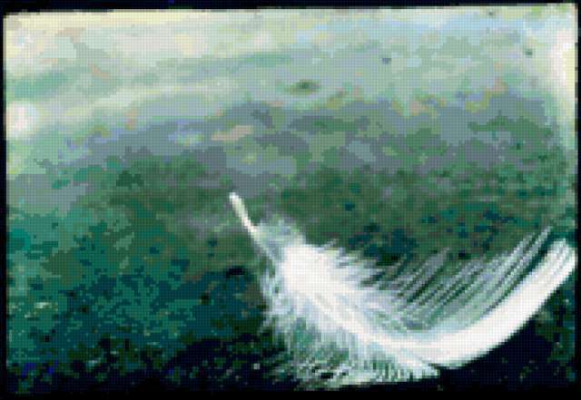 Ориентировочно так, схема вышивки «Перышко», созданная автором Dalya, будет выглядеть при отшиве на канве. Размер данной вышивки равен 190x131 крестов, при этом используется 57 цветов. Ключевые слова, по которым можно найти эту схему: перышко перо легкость краски акварель. Также, вы можете взглянуть на оригинальную картинку, соответствующую данной схеме вышивки.