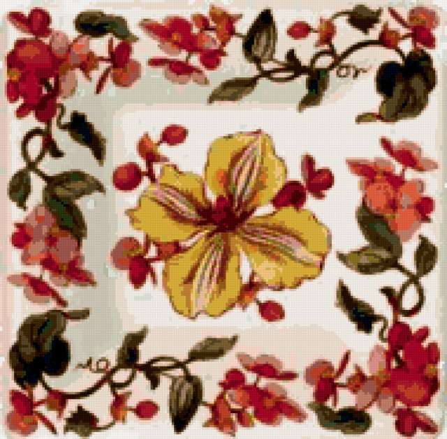 Ориентировочно так, схема вышивки «Подушка "Клематис"», созданная автором poltanya, будет выглядеть при отшиве на канве. Размер данной вышивки равен 190x187 крестов, при этом используется 42 цветов. Ключевые слова, по которым можно найти эту схему: клематис, клематисы, подушка, подушки, цветы, красота, цветочки, растения, природа, картина, флора, картины. Также, вы можете взглянуть на оригинальную картинку, соответствующую данной схеме вышивки.