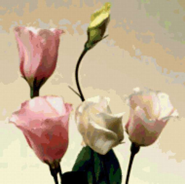 Ориентировочно так, схема вышивки «Подушка "Цветы"», созданная автором BiataV, будет выглядеть при отшиве на канве. Размер данной вышивки равен 190x189 крестов, при этом используется 76 цветов. Ключевые слова, по которым можно найти эту схему: природа, флора, цветы, подушка, роза. Также, вы можете взглянуть на оригинальную картинку, соответствующую данной схеме вышивки.