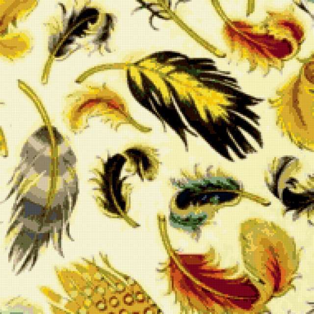 Ориентировочно так, схема вышивки «Подушка Перышки», созданная автором 13197, будет выглядеть при отшиве на канве. Размер данной вышивки равен 190x190 крестов, при этом используется 45 цветов. Ключевые слова, по которым можно найти эту схему: подушка, перо. Также, вы можете взглянуть на оригинальную картинку, соответствующую данной схеме вышивки.