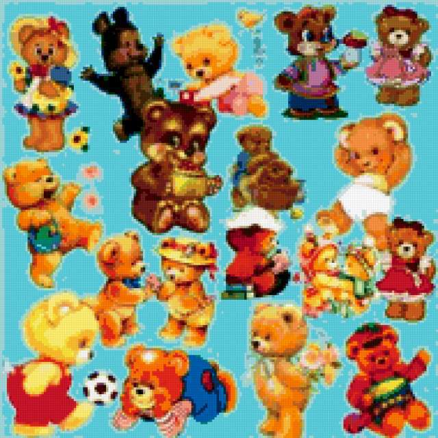 Ориентировочно так, схема вышивки «Подушка медвежата», созданная автором Melisenta, будет выглядеть при отшиве на канве. Размер данной вышивки равен 190x190 крестов, при этом используется 84 цветов. Ключевые слова, по которым можно найти эту схему: подушка, сказка, детям, медведи, животные, мультик, игрушки. Также, вы можете взглянуть на оригинальную картинку, соответствующую данной схеме вышивки.