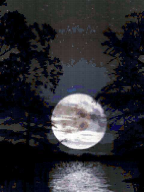 Ориентировочно так, схема вышивки «Полнолуние.», созданная автором olgus, будет выглядеть при отшиве на канве. Размер данной вышивки равен 142x189 крестов, при этом используется 45 цветов. Ключевые слова, по которым можно найти эту схему: луна, ночь.. Также, вы можете взглянуть на оригинальную картинку, соответствующую данной схеме вышивки.