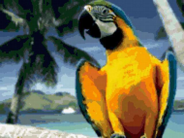 Ориентировочно так, схема вышивки «Попугай», созданная автором Natali82, будет выглядеть при отшиве на канве. Размер данной вышивки равен 190x142 крестов, при этом используется 72 цветов. Ключевые слова, по которым можно найти эту схему: птицы. Также, вы можете взглянуть на оригинальную картинку, соответствующую данной схеме вышивки.