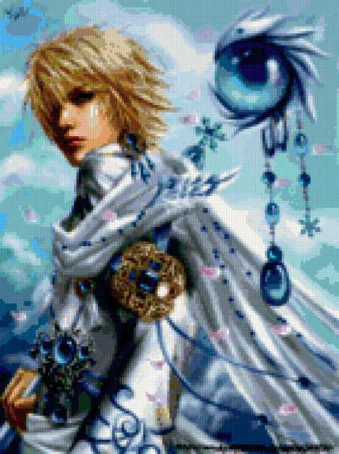 Ориентировочно так, схема вышивки «Портрет юноши», созданная автором avevstigneeva, будет выглядеть при отшиве на канве. Размер данной вышивки равен 142x190 крестов, при этом используется 83 цветов. Ключевые слова, по которым можно найти эту схему: фэнтези, юноша, портрет. Также, вы можете взглянуть на оригинальную картинку, соответствующую данной схеме вышивки.
