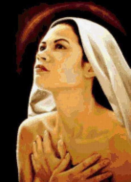 Ориентировочно так, схема вышивки «Портрет 44», созданная автором zita, будет выглядеть при отшиве на канве. Размер данной вышивки равен 137x190 крестов, при этом используется 55 цветов. Ключевые слова, по которым можно найти эту схему: портрет, картина, дева, девушка, исскуство. Также, вы можете взглянуть на оригинальную картинку, соответствующую данной схеме вышивки.