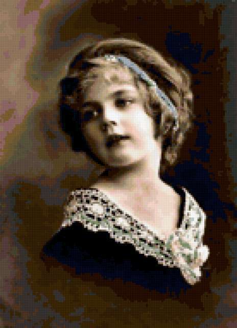 Ориентировочно так, схема вышивки «Портрет», созданная автором zita, будет выглядеть при отшиве на канве. Размер данной вышивки равен 138x190 крестов, при этом используется 61 цветов. Ключевые слова, по которым можно найти эту схему: портрет, дети, девушка, ретро. Также, вы можете взглянуть на оригинальную картинку, соответствующую данной схеме вышивки.