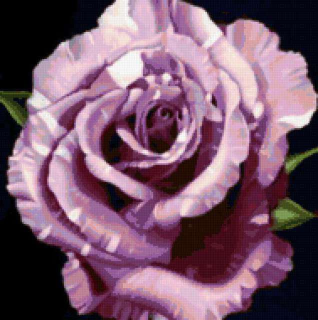 Ориентировочно так, схема вышивки «Прекрасная роза», созданная автором Eddy, будет выглядеть при отшиве на канве. Размер данной вышивки равен 189x190 крестов, при этом используется 50 цветов. Ключевые слова, по которым можно найти эту схему: подушка, картина, лиловые цветы, роза. Также, вы можете взглянуть на оригинальную картинку, соответствующую данной схеме вышивки.