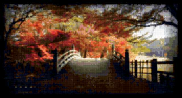 Ориентировочно так, схема вышивки «Природа, осень», созданная автором eva-ms, будет выглядеть при отшиве на канве. Размер данной вышивки равен 190x103 крестов, при этом используется 62 цветов. Ключевые слова, по которым можно найти эту схему: природа, осень. Также, вы можете взглянуть на оригинальную картинку, соответствующую данной схеме вышивки.