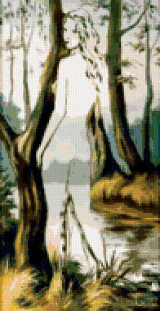 Ориентировочно так, схема вышивки «Природа», созданная автором VA903M, будет выглядеть при отшиве на канве. Размер данной вышивки равен 98x190 крестов, при этом используется 37 цветов. Ключевые слова, по которым можно найти эту схему: природа, девушка, образ. Также, вы можете взглянуть на оригинальную картинку, соответствующую данной схеме вышивки.
