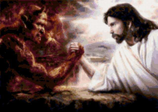 Ориентировочно так, схема вышивки «Протевостояние », созданная автором milacha974, будет выглядеть при отшиве на канве. Размер данной вышивки равен 190x135 крестов, при этом используется 52 цветов. Ключевые слова, по которым можно найти эту схему: религия. Также, вы можете взглянуть на оригинальную картинку, соответствующую данной схеме вышивки.