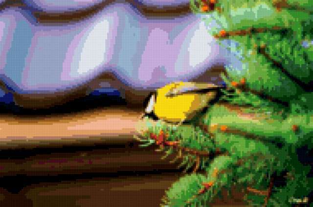 Ориентировочно так, схема вышивки «Птичка», созданная автором zita, будет выглядеть при отшиве на канве. Размер данной вышивки равен 190x126 крестов, при этом используется 70 цветов. Ключевые слова, по которым можно найти эту схему: птица, природа. Также, вы можете взглянуть на оригинальную картинку, соответствующую данной схеме вышивки.