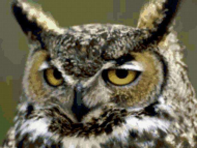 Ориентировочно так, схема вышивки «Птичка», созданная автором tanechka-tanya, будет выглядеть при отшиве на канве. Размер данной вышивки равен 190x143 крестов, при этом используется 68 цветов. Ключевые слова, по которым можно найти эту схему: сова, филин, птицы. Также, вы можете взглянуть на оригинальную картинку, соответствующую данной схеме вышивки.