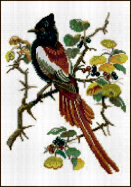 Ориентировочно так, схема вышивки «Птичка», созданная автором xa00p3857, будет выглядеть при отшиве на канве. Размер данной вышивки равен 134x190 крестов, при этом используется 59 цветов. Ключевые слова, по которым можно найти эту схему: птичка, ветка. Также, вы можете взглянуть на оригинальную картинку, соответствующую данной схеме вышивки.