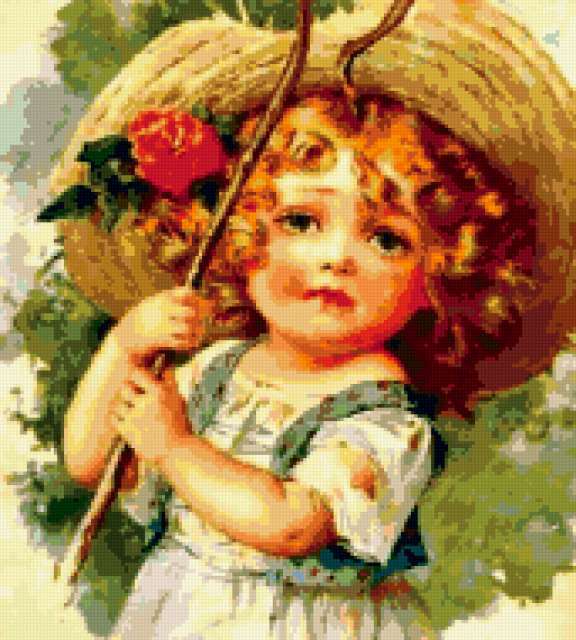 Ориентировочно так, схема вышивки «Ретро кроха в соломенной шляпе », созданная автором rybka6, будет выглядеть при отшиве на канве. Размер данной вышивки равен 171x190 крестов, при этом используется 56 цветов. Ключевые слова, по которым можно найти эту схему: дети, ангел, девочка, барышня, шляпка, ретро, красная, шапочка, капюшон, картина. Также, вы можете взглянуть на оригинальную картинку, соответствующую данной схеме вышивки.