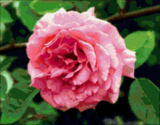 Ориентировочно так, схема вышивки «Роза», созданная автором palena29, будет выглядеть при отшиве на канве. Размер данной вышивки равен 190x149 крестов, при этом используется 62 цветов. Ключевые слова, по которым можно найти эту схему: флора, цветы, роза. Также, вы можете взглянуть на оригинальную картинку, соответствующую данной схеме вышивки.