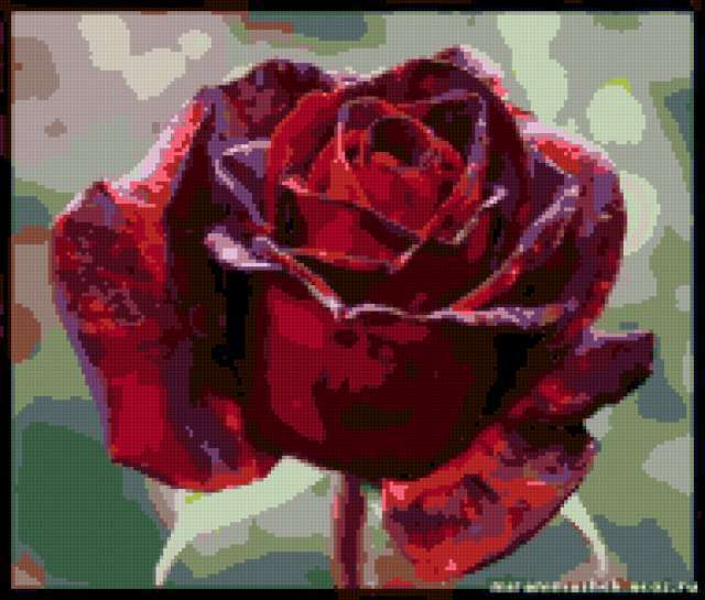Ориентировочно так, схема вышивки «Роза», созданная автором ninel1010101, будет выглядеть при отшиве на канве. Размер данной вышивки равен 190x162 крестов, при этом используется 27 цветов. Ключевые слова, по которым можно найти эту схему: цветок, флора, красота, цветы. Также, вы можете взглянуть на оригинальную картинку, соответствующую данной схеме вышивки.