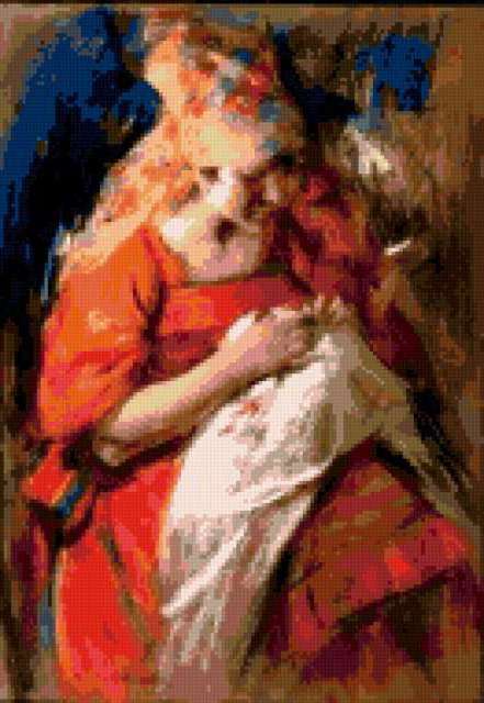 Ориентировочно так, схема вышивки «Рукодельница», созданная автором DAV-09, будет выглядеть при отшиве на канве. Размер данной вышивки равен 131x190 крестов, при этом используется 42 цветов. Ключевые слова, по которым можно найти эту схему: женщина, рукоделие, вышивка. Также, вы можете взглянуть на оригинальную картинку, соответствующую данной схеме вышивки.