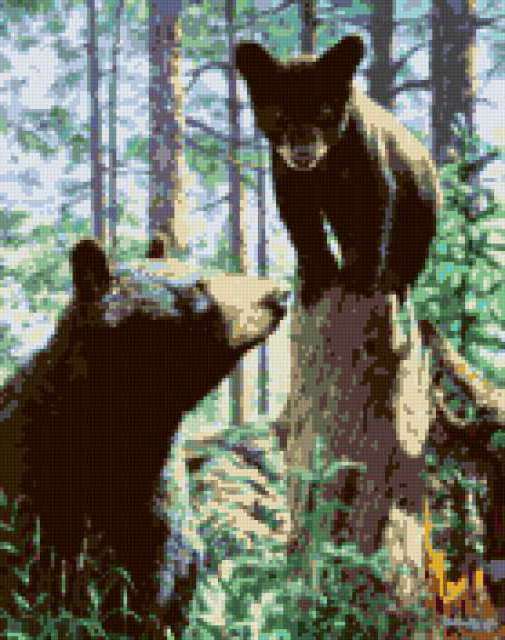 Ориентировочно так, схема вышивки «Рядом с мамочкой», созданная автором poltanya, будет выглядеть при отшиве на канве. Размер данной вышивки равен 139x176 крестов, при этом используется 32 цветов. Ключевые слова, по которым можно найти эту схему: медведи, медвежонок, в лесу, медвежата, природа, рядом с мамочкой, медведица. Также, вы можете взглянуть на оригинальную картинку, соответствующую данной схеме вышивки.
