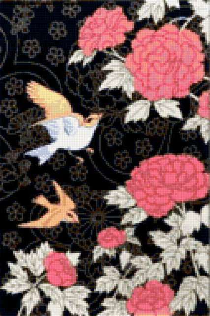 Ориентировочно так, схема вышивки «Сакура», созданная автором 777Svetlana777, будет выглядеть при отшиве на канве. Размер данной вышивки равен 127x190 крестов, при этом используется 60 цветов. Ключевые слова, по которым можно найти эту схему: сакура, цветы, дерево, весна, живопись, птицы, любовь. Также, вы можете взглянуть на оригинальную картинку, соответствующую данной схеме вышивки.