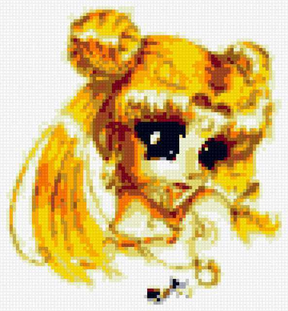Ориентировочно так, схема вышивки «Сейлор мун», созданная автором kelleralina, будет выглядеть при отшиве на канве. Размер данной вышивки равен 90x97 крестов, при этом используется 15 цветов. Ключевые слова, по которым можно найти эту схему: сейлор мун. Также, вы можете взглянуть на оригинальную картинку, соответствующую данной схеме вышивки.