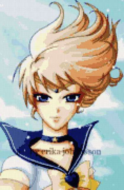 Ориентировочно так, схема вышивки «Сейлор уран», созданная автором vampirlady2009, будет выглядеть при отшиве на канве. Размер данной вышивки равен 118x180 крестов, при этом используется 32 цветов. Ключевые слова, по которым можно найти эту схему: сейлор уран, харука, сейлор воины, сейлор мун, аниме, картинка, девушка, она. Также, вы можете взглянуть на оригинальную картинку, соответствующую данной схеме вышивки.