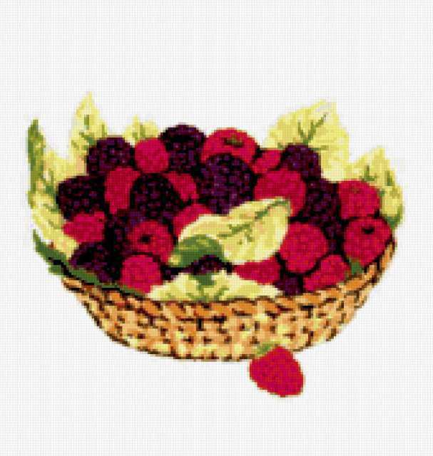 Ориентировочно так, схема вышивки «Серия "Для кухни"», созданная автором anor, будет выглядеть при отшиве на канве. Размер данной вышивки равен 170x179 крестов, при этом используется 35 цветов. Ключевые слова, по которым можно найти эту схему: ягоды, малина, серия, для кухни. Также, вы можете взглянуть на оригинальную картинку, соответствующую данной схеме вышивки.