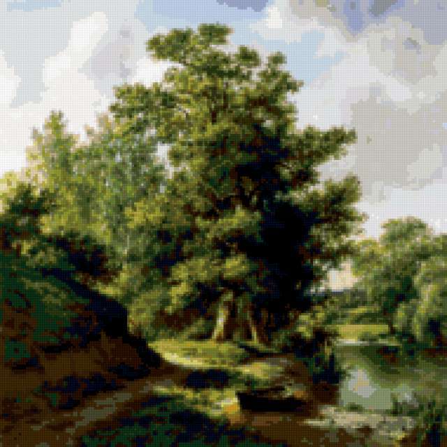 Ориентировочно так, схема вышивки «Серия - "Сатаров, природа..."», созданная автором Sineglazka, будет выглядеть при отшиве на канве. Размер данной вышивки равен 190x190 крестов, при этом используется 56 цветов. Ключевые слова, по которым можно найти эту схему: природа, сатаров, река, лето, картина, художник, деревья, дорога. Также, вы можете взглянуть на оригинальную картинку, соответствующую данной схеме вышивки.