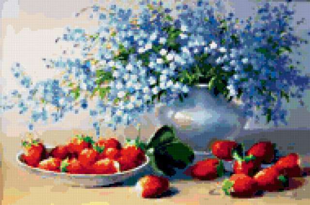 Ориентировочно так, схема вышивки «Серия:Ягодки», созданная автором 777Svetlana777, будет выглядеть при отшиве на канве. Размер данной вышивки равен 190x126 крестов, при этом используется 87 цветов. Ключевые слова, по которым можно найти эту схему: ягоды, клубника, малина, ежевика. Также, вы можете взглянуть на оригинальную картинку, соответствующую данной схеме вышивки.