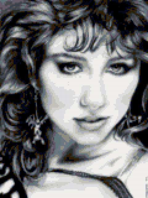 Ориентировочно так, схема вышивки «Серия-"Портреты девушек"», созданная автором Nadena_love, будет выглядеть при отшиве на канве. Размер данной вышивки равен 120x160 крестов, при этом используется 16 цветов. К несчастью, автор не назначил для схемы ключевые слова. Также, вы можете взглянуть на оригинальную картинку, соответствующую данной схеме вышивки.