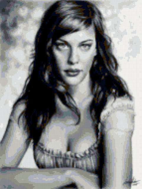 Ориентировочно так, схема вышивки «Серия-"Портреты девушек"», созданная автором Nadena_love, будет выглядеть при отшиве на канве. Размер данной вышивки равен 143x190 крестов, при этом используется 16 цветов. К несчастью, автор не назначил для схемы ключевые слова. Также, вы можете взглянуть на оригинальную картинку, соответствующую данной схеме вышивки.