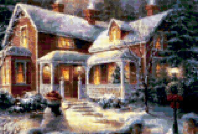 Ориентировочно так, схема вышивки «Серия-"Чудесница зима"», созданная автором Nadena_love, будет выглядеть при отшиве на канве. Размер данной вышивки равен 160x108 крестов, при этом используется 83 цветов. Ключевые слова, по которым можно найти эту схему: зима, волшебная. Также, вы можете взглянуть на оригинальную картинку, соответствующую данной схеме вышивки.