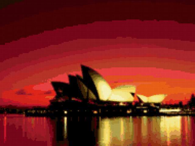 Ориентировочно так, схема вышивки «Сидней», созданная автором Asko_, будет выглядеть при отшиве на канве. Размер данной вышивки равен 190x143 крестов, при этом используется 48 цветов. Ключевые слова, по которым можно найти эту схему: сидней, австралия, города. Также, вы можете взглянуть на оригинальную картинку, соответствующую данной схеме вышивки.