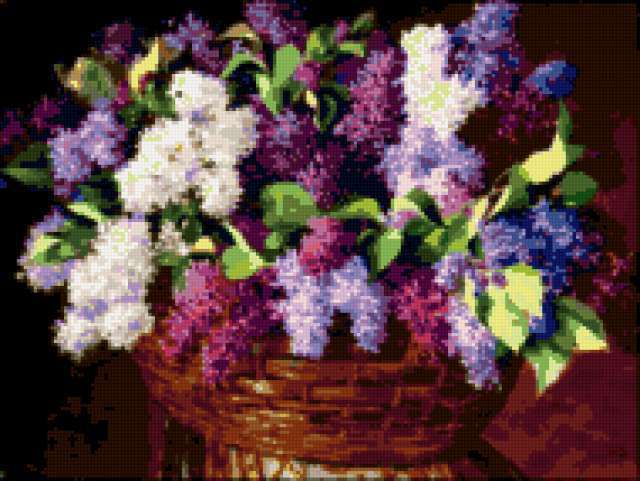 Ориентировочно так, схема вышивки «Сирень», созданная автором vampirlady2009, будет выглядеть при отшиве на канве. Размер данной вышивки равен 190x143 крестов, при этом используется 46 цветов. Ключевые слова, по которым можно найти эту схему: сирень, цветы, 8 марта, букет.картина. Также, вы можете взглянуть на оригинальную картинку, соответствующую данной схеме вышивки.