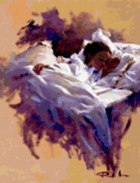 Ориентировочно так, схема вышивки «Сладкий сон», созданная автором zita, будет выглядеть при отшиве на канве. Размер данной вышивки равен 145x190 крестов, при этом используется 61 цветов. Ключевые слова, по которым можно найти эту схему: сон, девушка. Также, вы можете взглянуть на оригинальную картинку, соответствующую данной схеме вышивки.