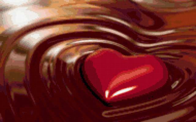 Ориентировочно так, схема вышивки «Сладкое сердце», созданная автором GOGI, будет выглядеть при отшиве на канве. Размер данной вышивки равен 190x119 крестов, при этом используется 56 цветов. Ключевые слова, по которым можно найти эту схему: любовь. Также, вы можете взглянуть на оригинальную картинку, соответствующую данной схеме вышивки.