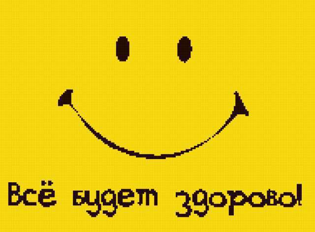 Ориентировочно так, схема вышивки «Смайлик», созданная автором Svetla_Nochka, будет выглядеть при отшиве на канве. Размер данной вышивки равен 190x140 крестов, при этом используется 2 цветов. Ключевые слова, по которым можно найти эту схему: смайлы, детское, мультфильмы, мультики. Также, вы можете взглянуть на оригинальную картинку, соответствующую данной схеме вышивки.