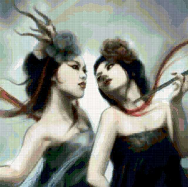 Ориентировочно так, схема вышивки «Та самая...восточная принцесса », созданная автором vampirlady2009, будет выглядеть при отшиве на канве. Размер данной вышивки равен 190x189 крестов, при этом используется 64 цветов. Ключевые слова, по которым можно найти эту схему: та самая...восточная принцесса, красавица, восток, девушка, она, картина, принцессы, подушка. Также, вы можете взглянуть на оригинальную картинку, соответствующую данной схеме вышивки.
