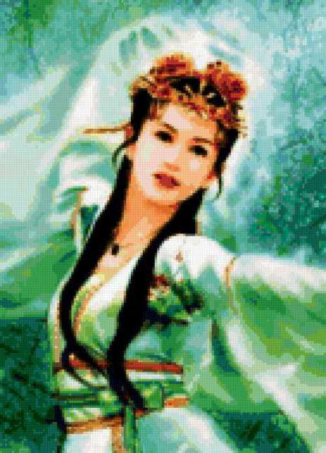 Ориентировочно так, схема вышивки «Та самая...восточная принцесса », созданная автором vampirlady2009, будет выглядеть при отшиве на канве. Размер данной вышивки равен 137x190 крестов, при этом используется 73 цветов. Ключевые слова, по которым можно найти эту схему: та самая...восточная принцесса, красавица, восток, девушка, она, картина, принцессы, портрет. Также, вы можете взглянуть на оригинальную картинку, соответствующую данной схеме вышивки.