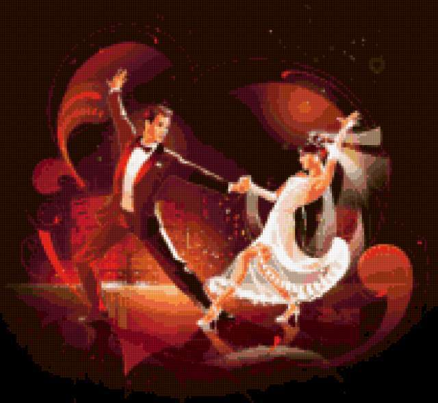 Ориентировочно так, схема вышивки «Танец страсти», созданная автором anor, будет выглядеть при отшиве на канве. Размер данной вышивки равен 190x175 крестов, при этом используется 56 цветов. Ключевые слова, по которым можно найти эту схему: люди, мужчина, женщина, пара, танец, картина. Также, вы можете взглянуть на оригинальную картинку, соответствующую данной схеме вышивки.