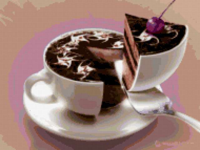 Ориентировочно так, схема вышивки «Тортик», созданная автором xa00p3857, будет выглядеть при отшиве на канве. Размер данной вышивки равен 190x143 крестов, при этом используется 61 цветов. Ключевые слова, по которым можно найти эту схему: натюрморт, кухня, чашка, торт, пироженое, еда. Также, вы можете взглянуть на оригинальную картинку, соответствующую данной схеме вышивки.