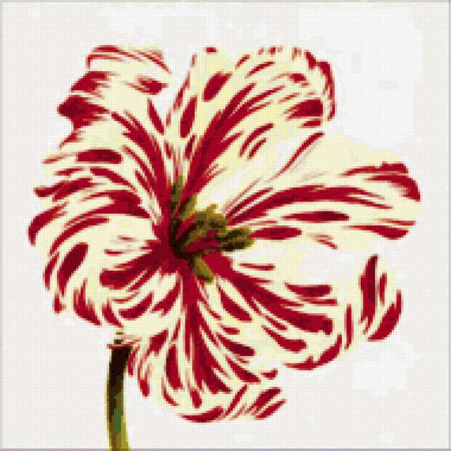 Ориентировочно так, схема вышивки «Тюльпан», созданная автором Cadykova, будет выглядеть при отшиве на канве. Размер данной вышивки равен 190x190 крестов, при этом используется 61 цветов. Ключевые слова, по которым можно найти эту схему: цветы, букет, букетик, тюльпан, красный, подушка. Также, вы можете взглянуть на оригинальную картинку, соответствующую данной схеме вышивки.