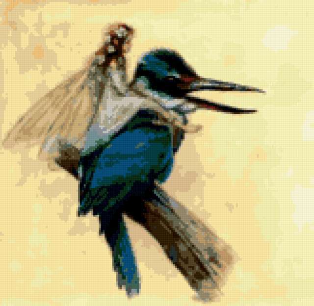 Ориентировочно так, схема вышивки «Фея на синей птице», созданная автором pyreva, будет выглядеть при отшиве на канве. Размер данной вышивки равен 165x161 крестов, при этом используется 33 цветов. Ключевые слова, по которым можно найти эту схему: феи, детям, сказка, фэнтези, птица. Также, вы можете взглянуть на оригинальную картинку, соответствующую данной схеме вышивки.