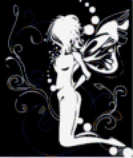 Ориентировочно так, схема вышивки «Фея», созданная автором Bagetta, будет выглядеть при отшиве на канве. Размер данной вышивки равен 100x118 крестов, при этом используется 17 цветов. К несчастью, автор не назначил для схемы ключевые слова. Также, вы можете взглянуть на оригинальную картинку, соответствующую данной схеме вышивки.