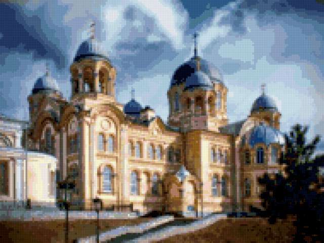 Ориентировочно так, схема вышивки «Храм», созданная автором 16solnushko, будет выглядеть при отшиве на канве. Размер данной вышивки равен 190x143 крестов, при этом используется 77 цветов. Ключевые слова, по которым можно найти эту схему: храм. Также, вы можете взглянуть на оригинальную картинку, соответствующую данной схеме вышивки.