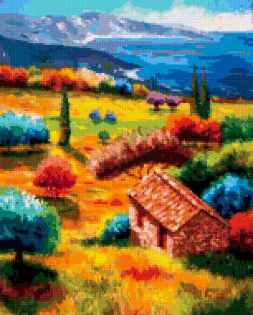 Ориентировочно так, схема вышивки «Художник Jean-Mark Janiaczyk», созданная автором malkinaiv, будет выглядеть при отшиве на канве. Размер данной вышивки равен 153x190 крестов, при этом используется 81 цветов. Ключевые слова, по которым можно найти эту схему: картина, пейзаж, цветы, дома, море. Также, вы можете взглянуть на оригинальную картинку, соответствующую данной схеме вышивки.