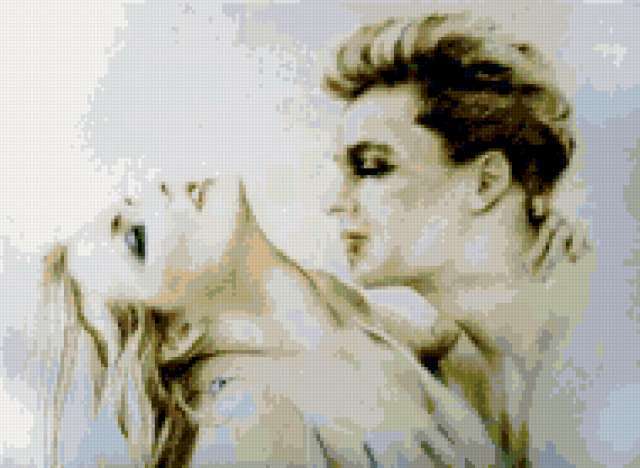 Ориентировочно так, схема вышивки «Художница Sara Moon», созданная автором avevstigneeva, будет выглядеть при отшиве на канве. Размер данной вышивки равен 190x139 крестов, при этом используется 40 цветов. Ключевые слова, по которым можно найти эту схему: живопись, акварель, девушка, юноша, пара. Также, вы можете взглянуть на оригинальную картинку, соответствующую данной схеме вышивки.