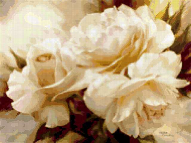 Ориентировочно так, схема вышивки «Хх4103», созданная автором polovinkamarinka, будет выглядеть при отшиве на канве. Размер данной вышивки равен 190x142 крестов, при этом используется 57 цветов. Ключевые слова, по которым можно найти эту схему: картина, живопись, цветы. Также, вы можете взглянуть на оригинальную картинку, соответствующую данной схеме вышивки.