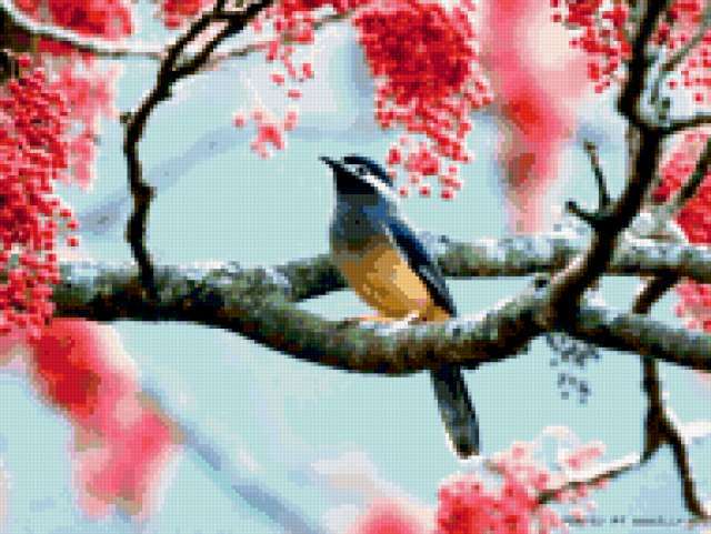 Ориентировочно так, схема вышивки «Хх420», созданная автором polovinkamarinka, будет выглядеть при отшиве на канве. Размер данной вышивки равен 190x143 крестов, при этом используется 72 цветов. Ключевые слова, по которым можно найти эту схему: природа, птицы. Также, вы можете взглянуть на оригинальную картинку, соответствующую данной схеме вышивки.