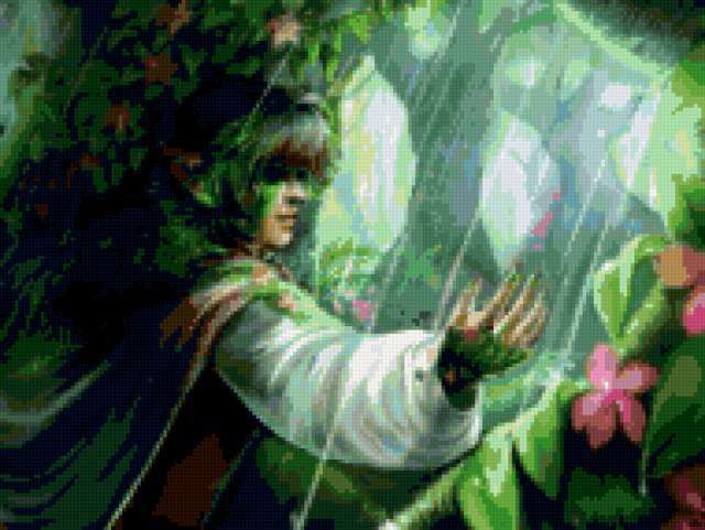 Ориентировочно так, схема вышивки «Хх4831», созданная автором polovinkamarinka, будет выглядеть при отшиве на канве. Размер данной вышивки равен 190x143 крестов, при этом используется 62 цветов. Ключевые слова, по которым можно найти эту схему: картина, фэнтези, дождь, цветы, природа, юноша. Также, вы можете взглянуть на оригинальную картинку, соответствующую данной схеме вышивки.
