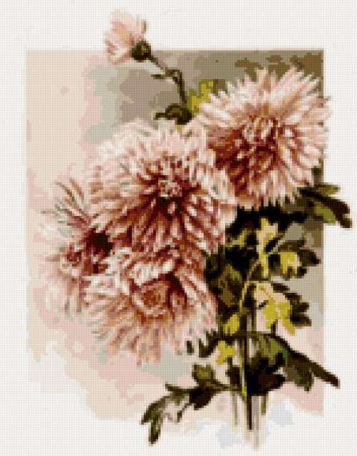 Ориентировочно так, схема вышивки «Цветики, цветочки», созданная автором rybka6, будет выглядеть при отшиве на канве. Размер данной вышивки равен 149x190 крестов, при этом используется 35 цветов. Ключевые слова, по которым можно найти эту схему: цветы, флора, лепесток, георгины, георгин, астры, хризантемы, роза. Также, вы можете взглянуть на оригинальную картинку, соответствующую данной схеме вышивки.